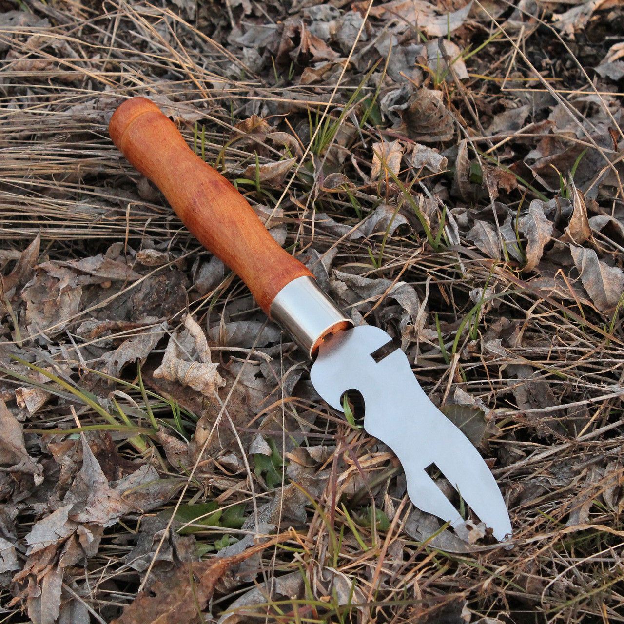 Зручна вилка з дерев'яною ручкою для зняття м'яса з шампурів
